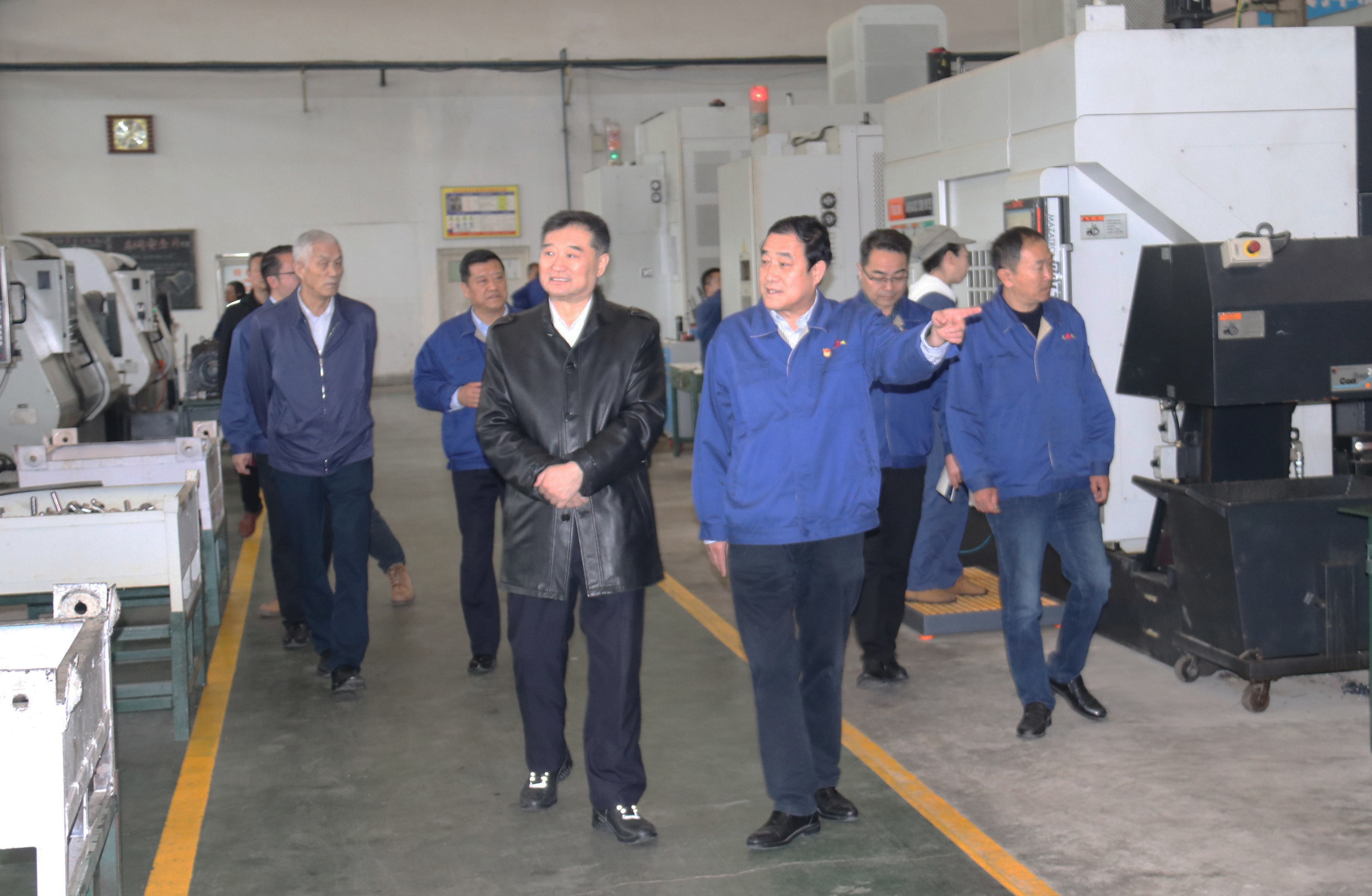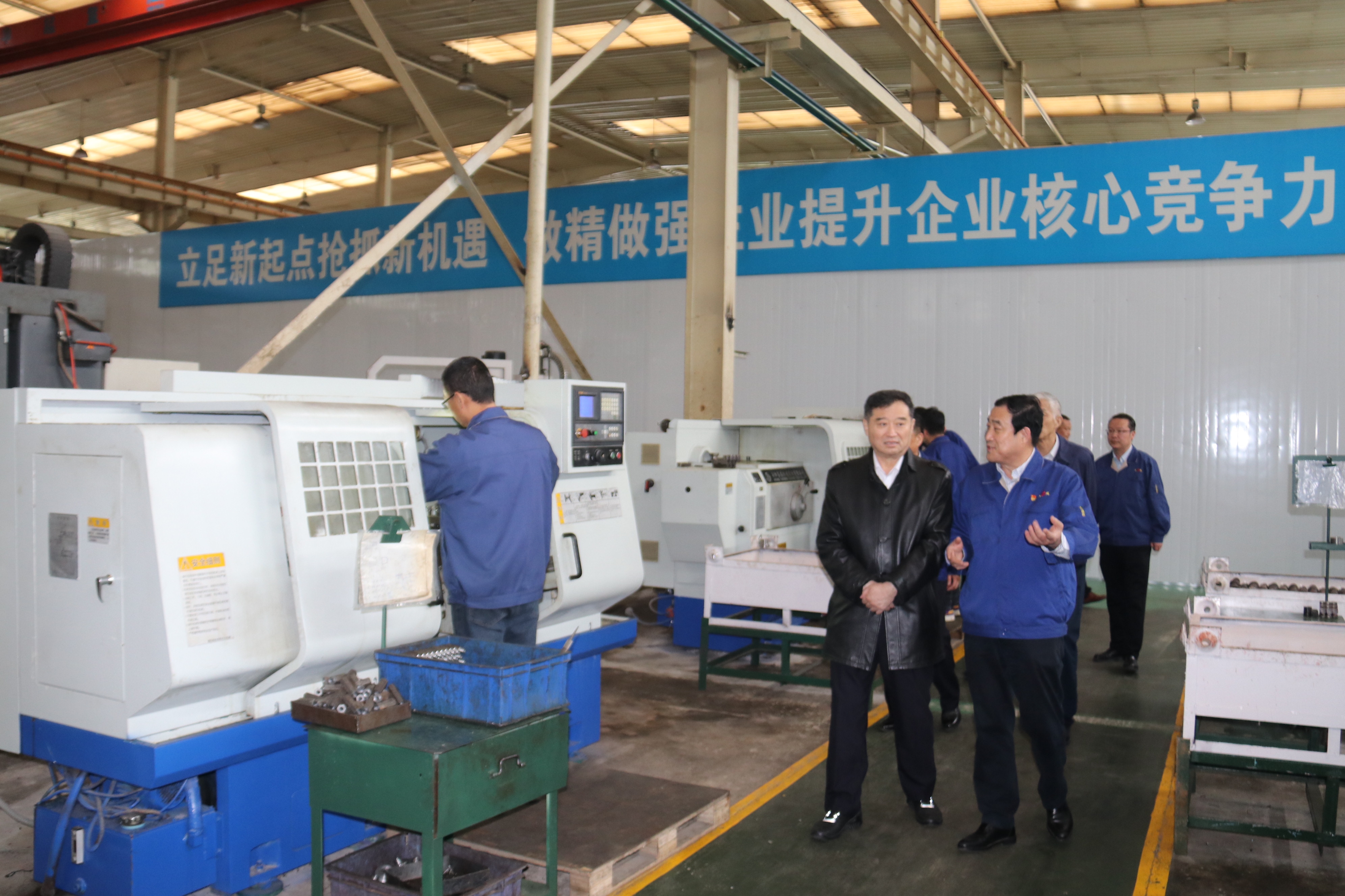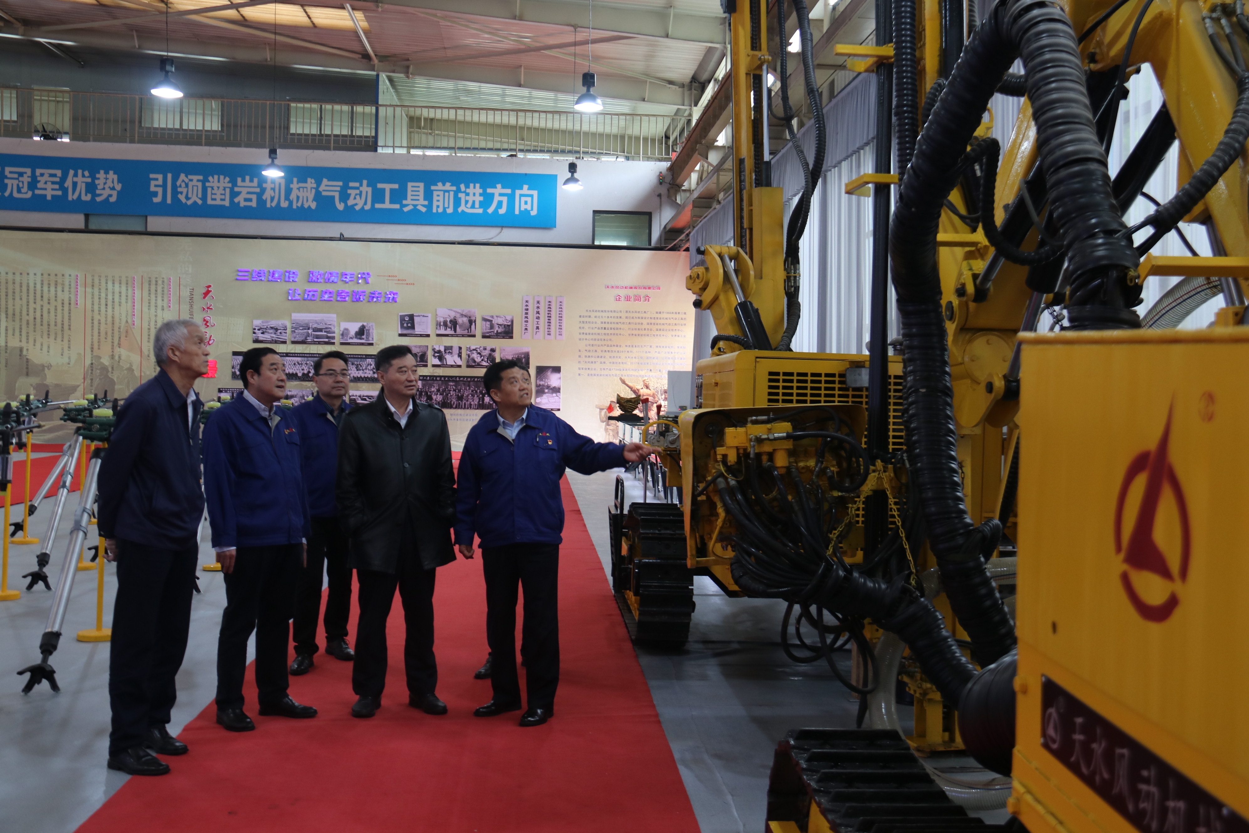 蘇子孟、祁俊在公司領(lǐng)導(dǎo)陪同下先后參觀了公司展廳、液壓鑿巖機(jī)車間、精密鍛造生產(chǎn)線施工現(xiàn)場、熱處理車間、小件、大件、總裝車間、智能存儲倉庫等。吳興太、單光利介紹了企業(yè)發(fā)展歷程、取得的榮譽、研發(fā)生產(chǎn)、市場營銷等情況。